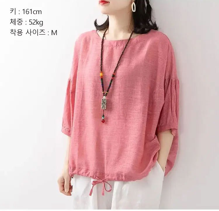 통기성 좋은 면마 소재 여성 티셔츠