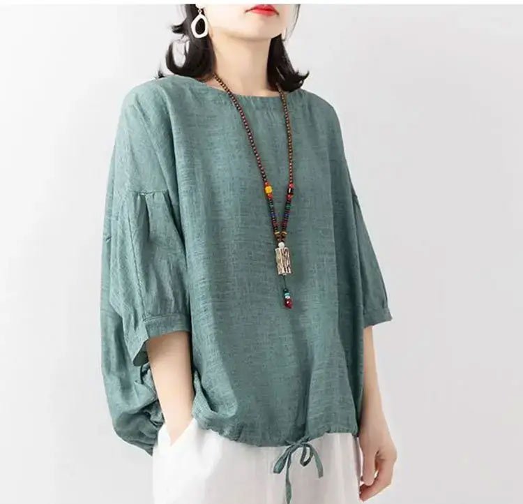 여성 캐주얼 스타일 면마 티셔츠