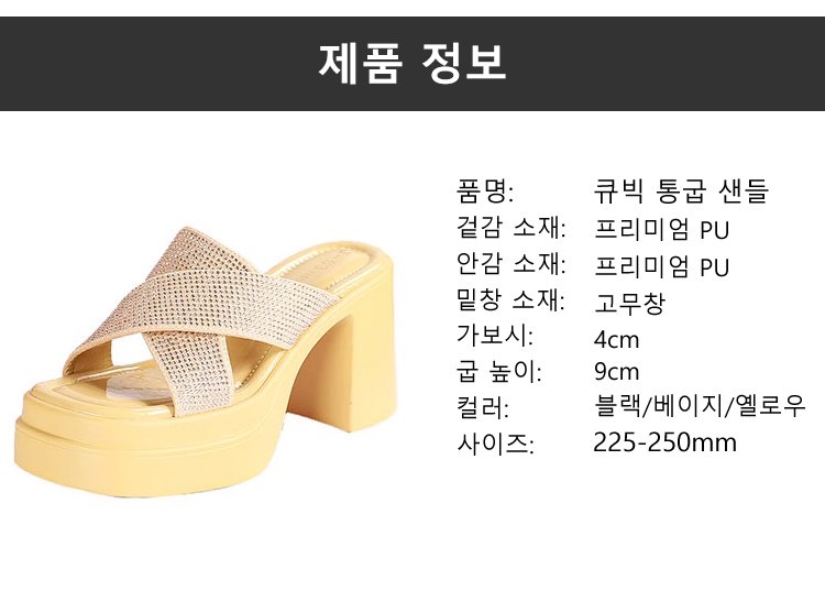 데일리룩&파티룩 큐빅 통굽 샌들 연출